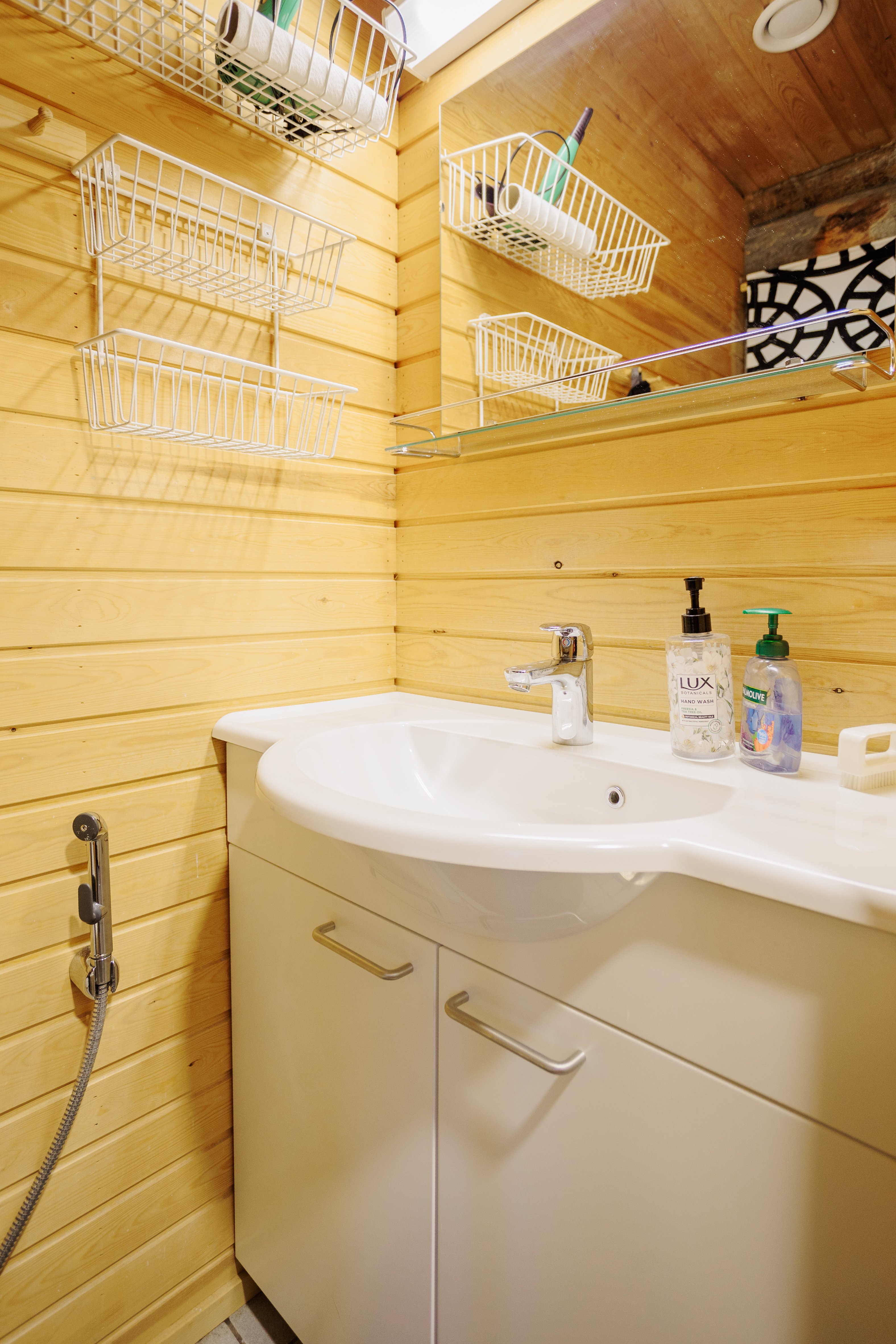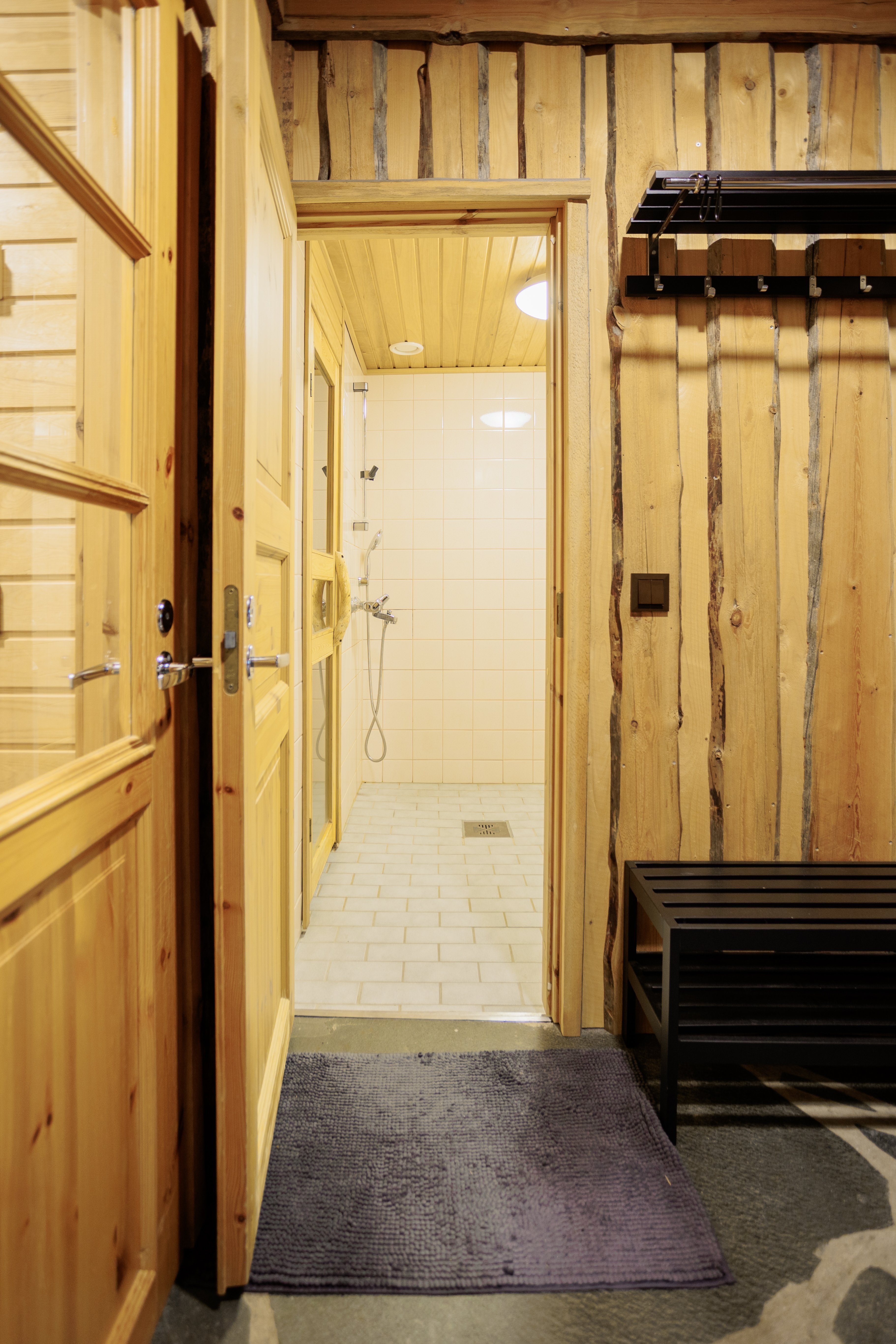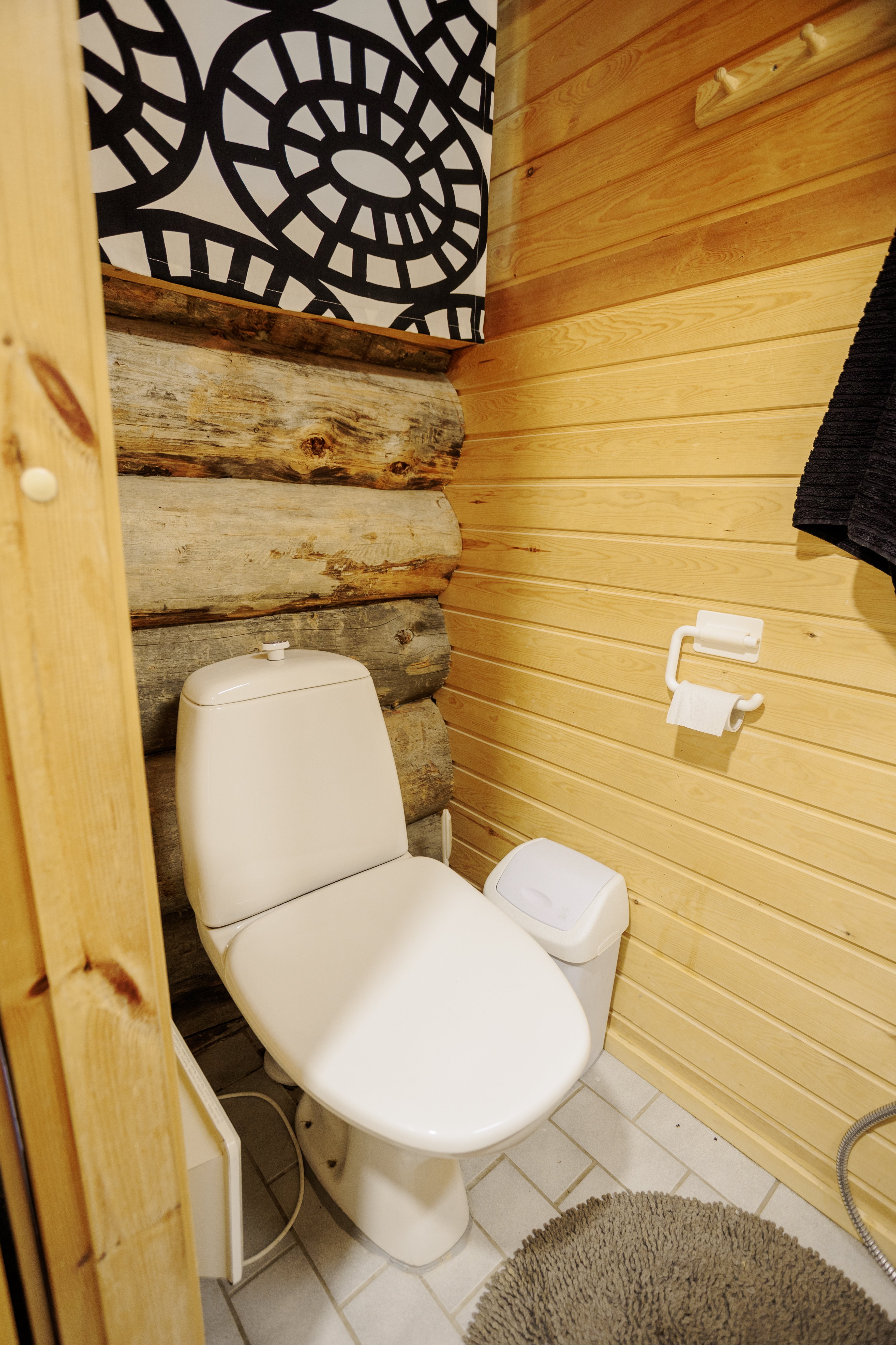 Pesutilat ja sauna ovat käytännöllisesti heti sisäänkäynnin yhteydessä, mikä tekee lumisten vaatteiden käsittelystä vaivatonta. Saunan lämpö tarjoaa täydellisen rentoutumishetken päivän päätteeksi. Lisäksi mökissä on ulkovarasto, joka tarjoaa rutkasti säilytystilaa harrastusvälineille.