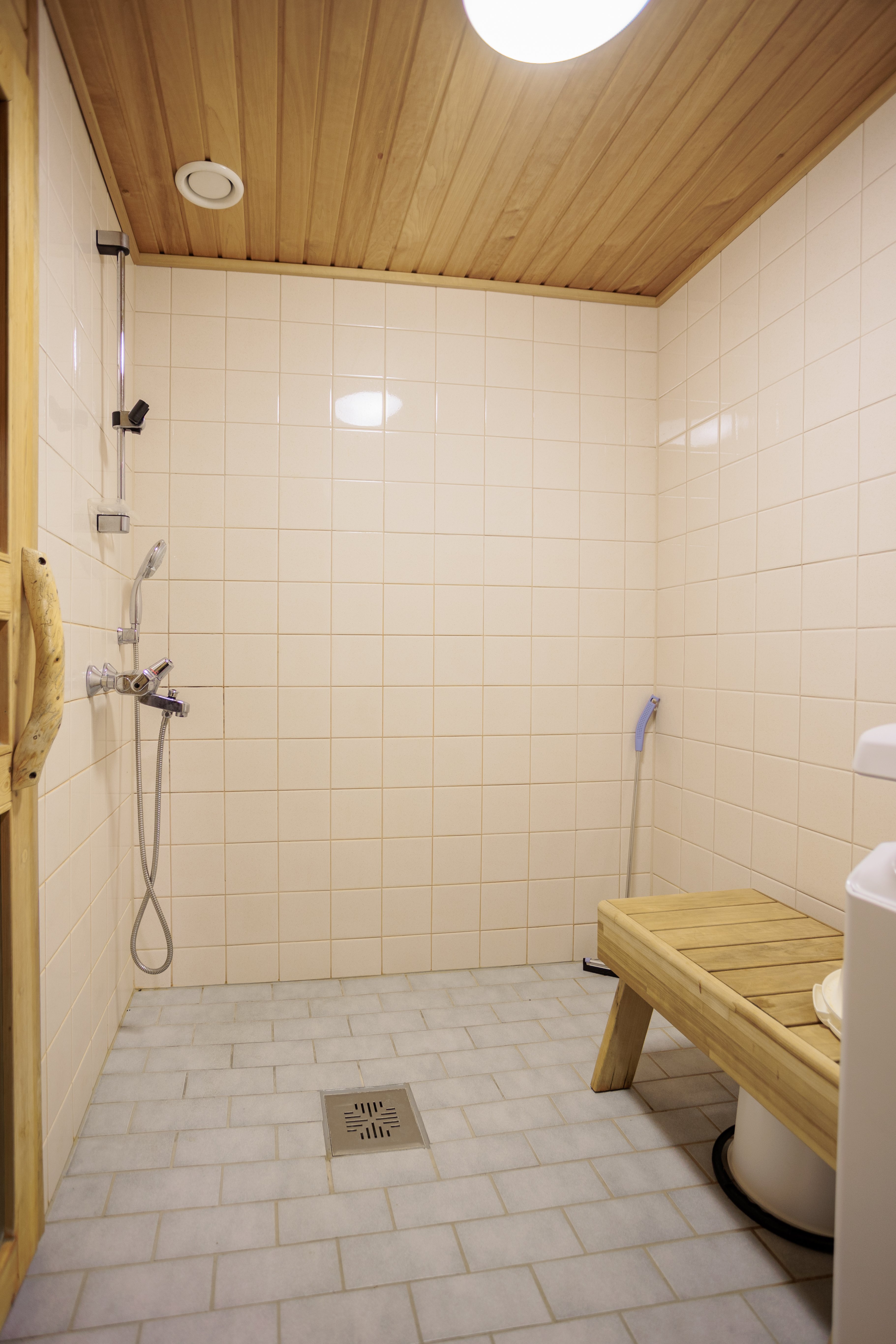 Loma-asunnon pesutilat sijaitsevat mukavasti sisääntulon lähellä ja ovat helposti saavutettavissa ulkoaktiviteettien sotkemissa varusteissa, ilman koko mökin sotkeutumista. Tilaa on oikein mukavasti ja pesukone on myös pesutilojen yhteydessä.