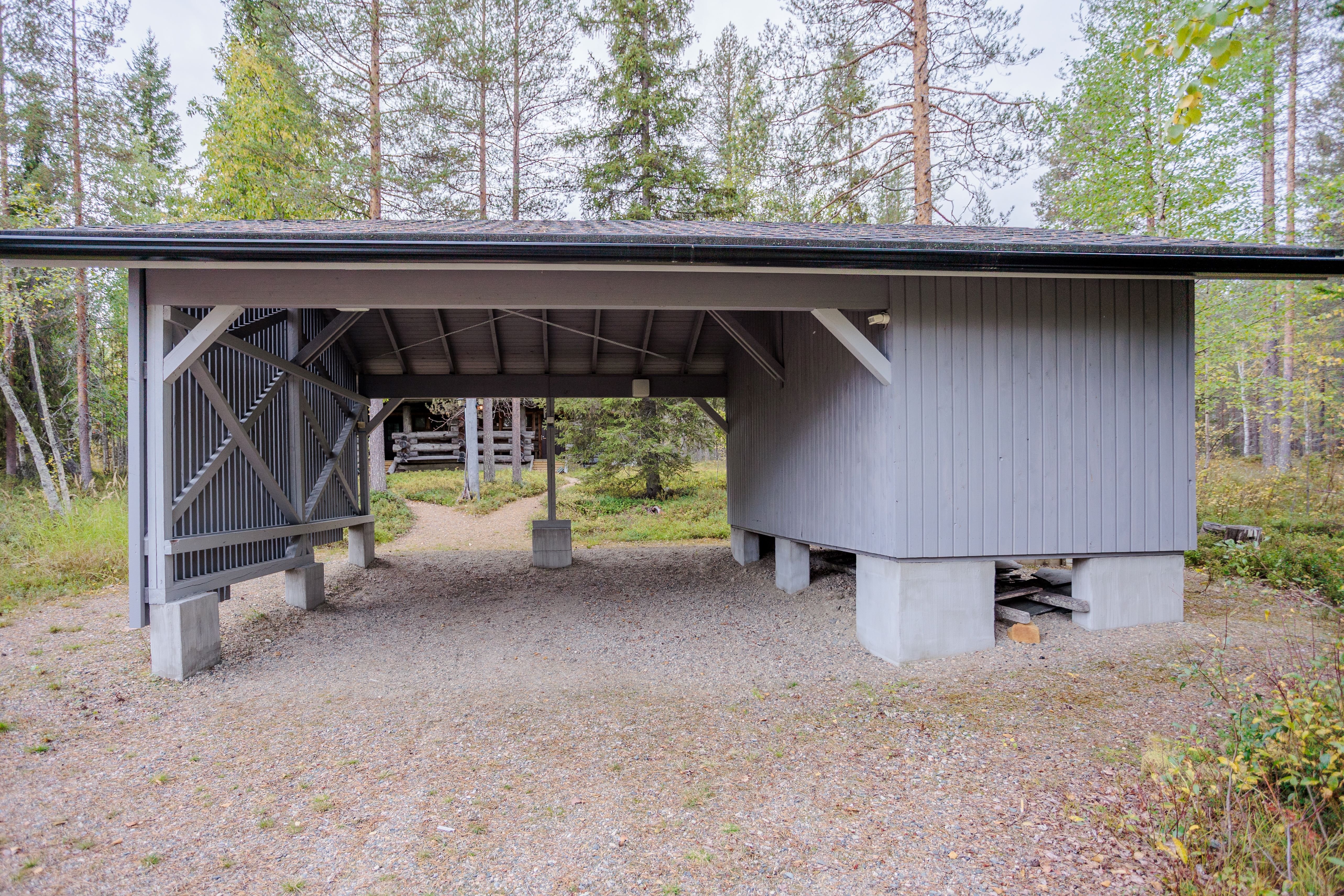 Pihaan tultaessa on autokatos, jossa on yksi autopaikka molemmille huoneistoille. Lisäksi autokatoksessa on lukittava säilytystila.