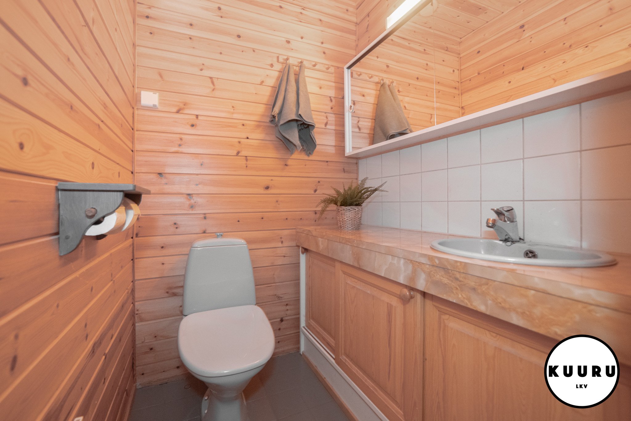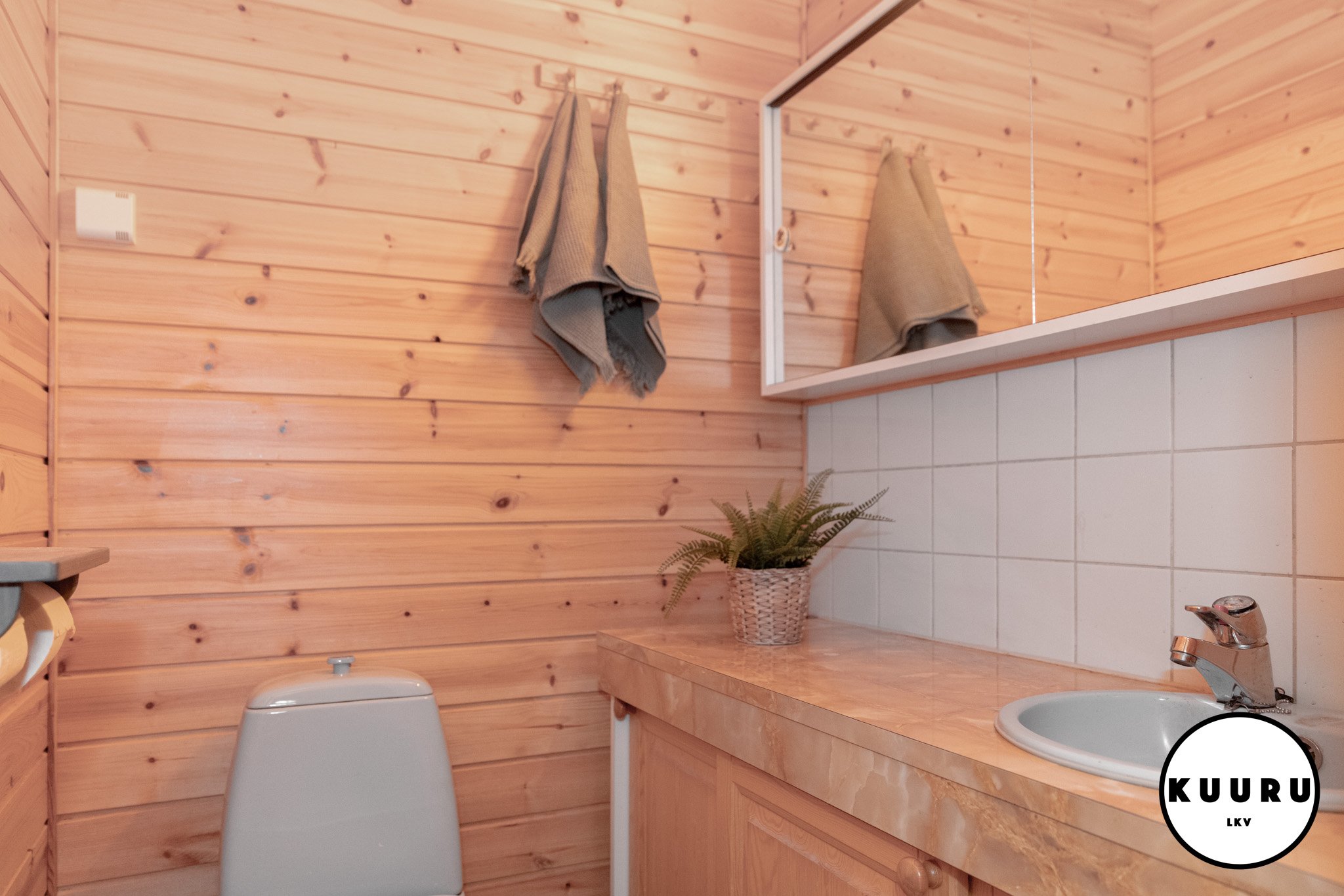 Kohteen erillisessä wc:ssä on runsaasti kaappi- ja tasotilaa, mikä helpottaa esimerkiksi kosmetiikan ja hygieniatarvikkeiden säilytystä.