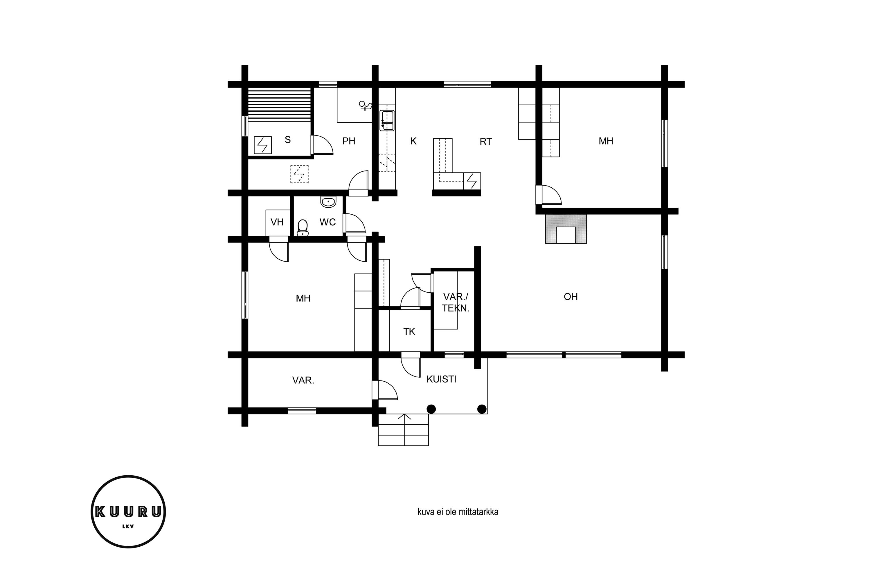 2 mh + oh + tupakeittiö + wc + ph + s + var + tekninen tila