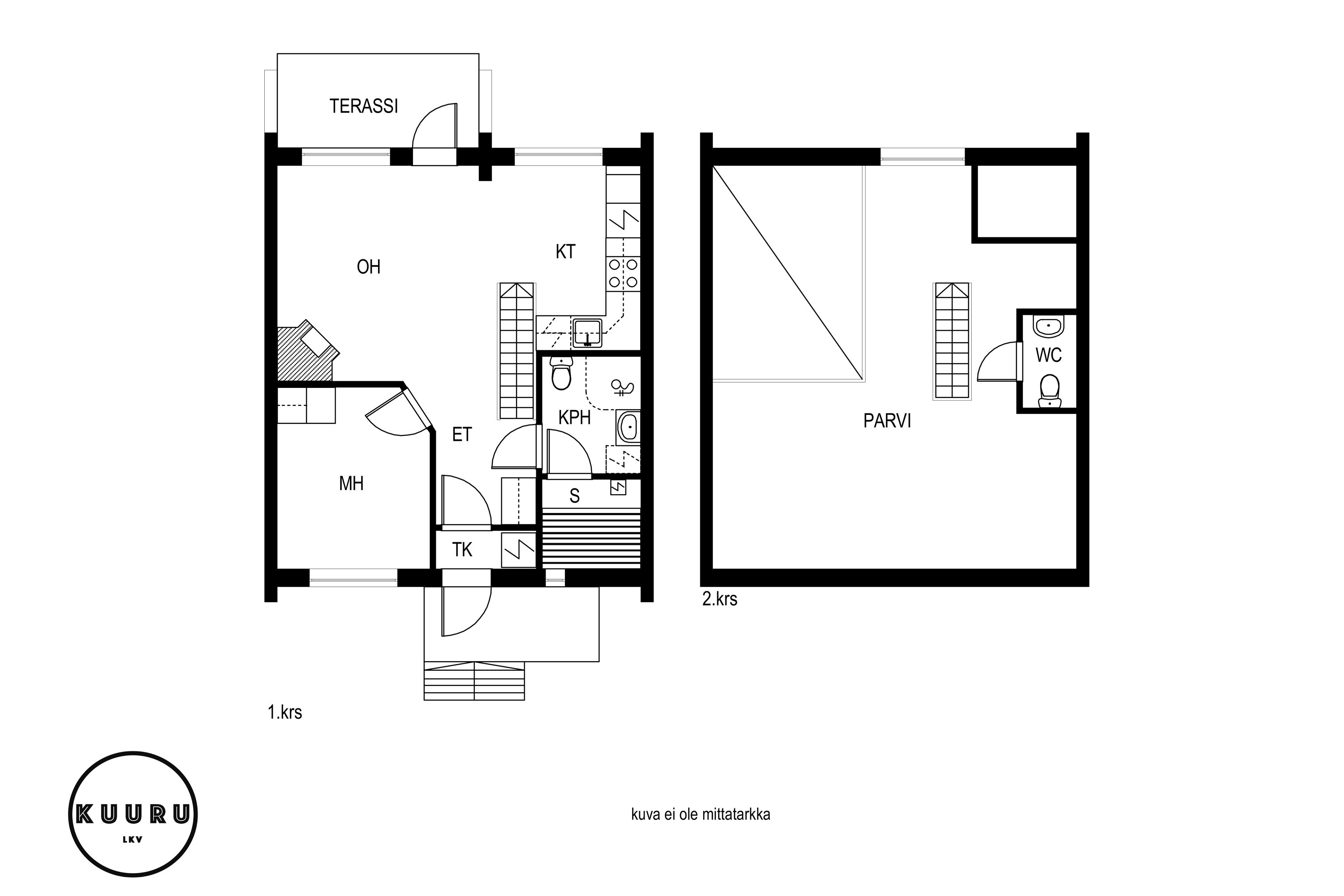 Loma-asunnossa on kaksi wc-tilaa. Toinen wc on alakerran pesuhuoneessa ja toinen wc tila sijaitsee parvella. Kaksi wc-tilaa helpottaa mukavasti isomman seurueen majoittumista.